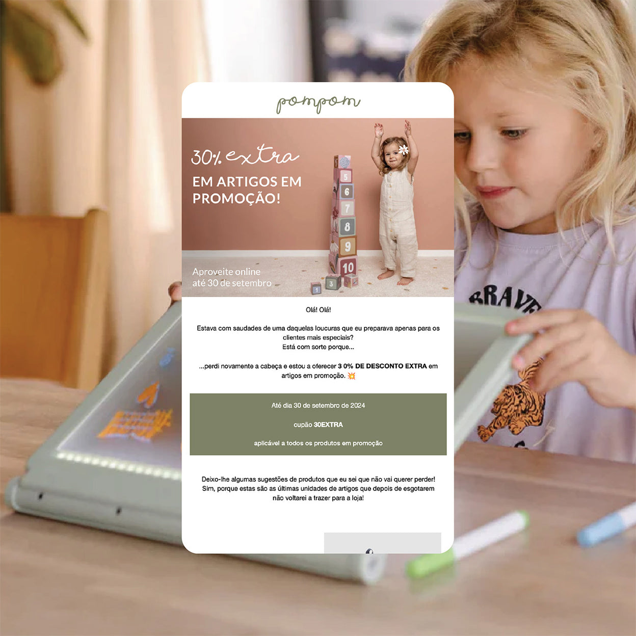 A POMPOM é uma loja online portuguesa de brinquedos, puericultura e decoração infantil. Para aumentar vendas e recorrência de compras, confiou na AUGE para otimizar a sua estratégia de email marketing, implementando campanhas segmentadas e automações personalizadas, com impacto direto no e-commerce.
